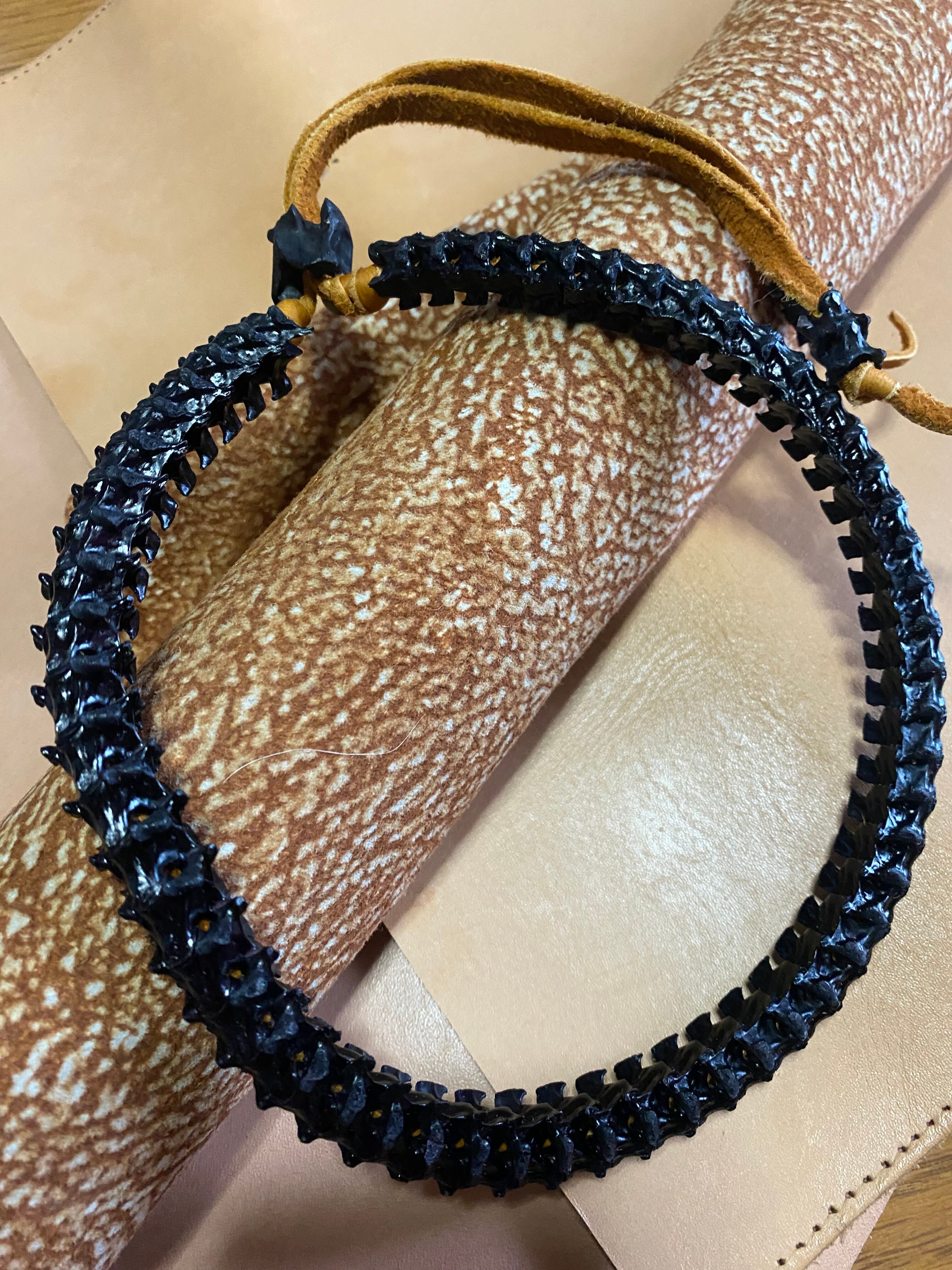 ヘビの骨と鹿の革紐を使ったネックレスです。