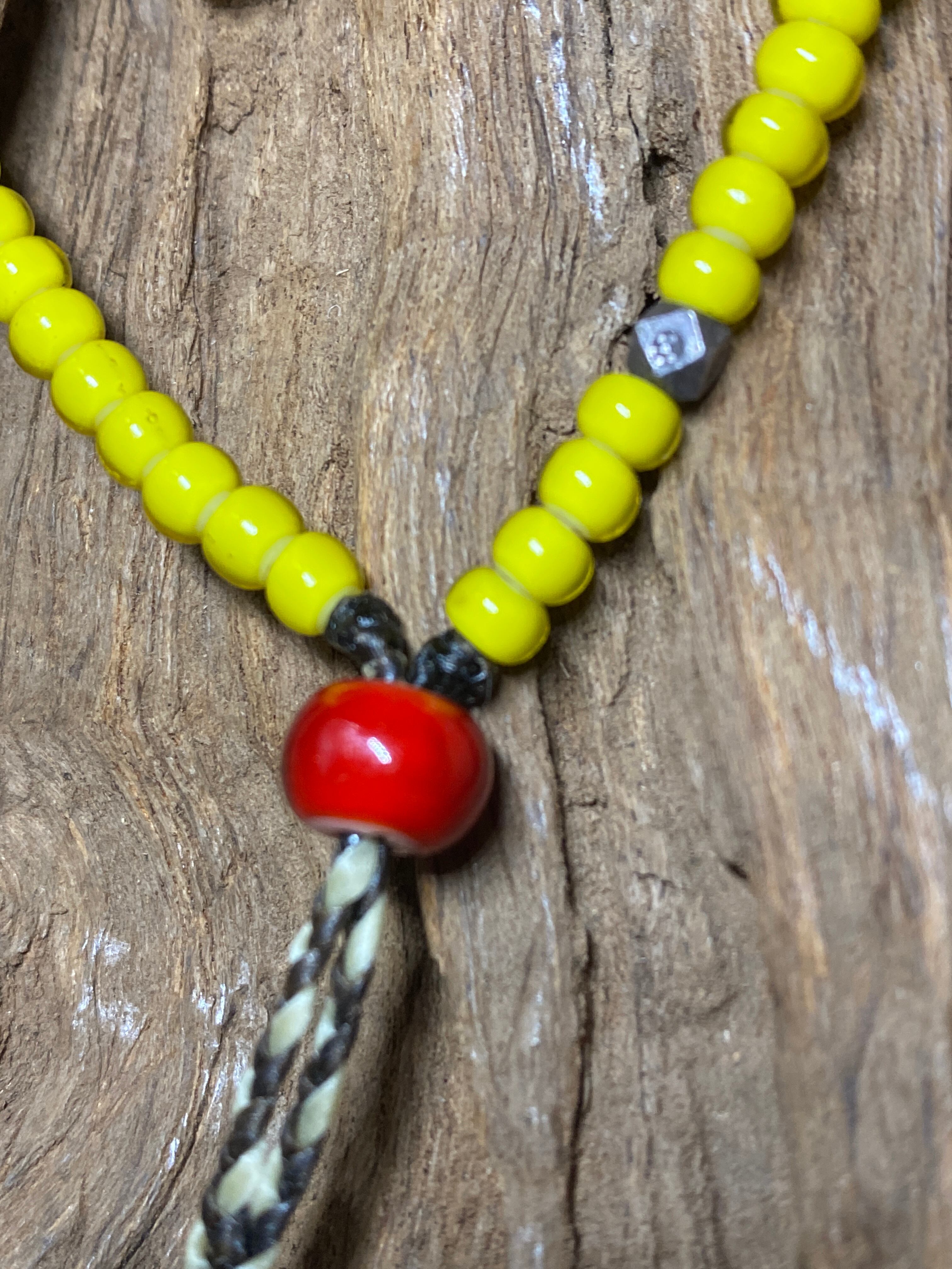 タイガーアイとイエローアンティークビーズのブレスレットです。