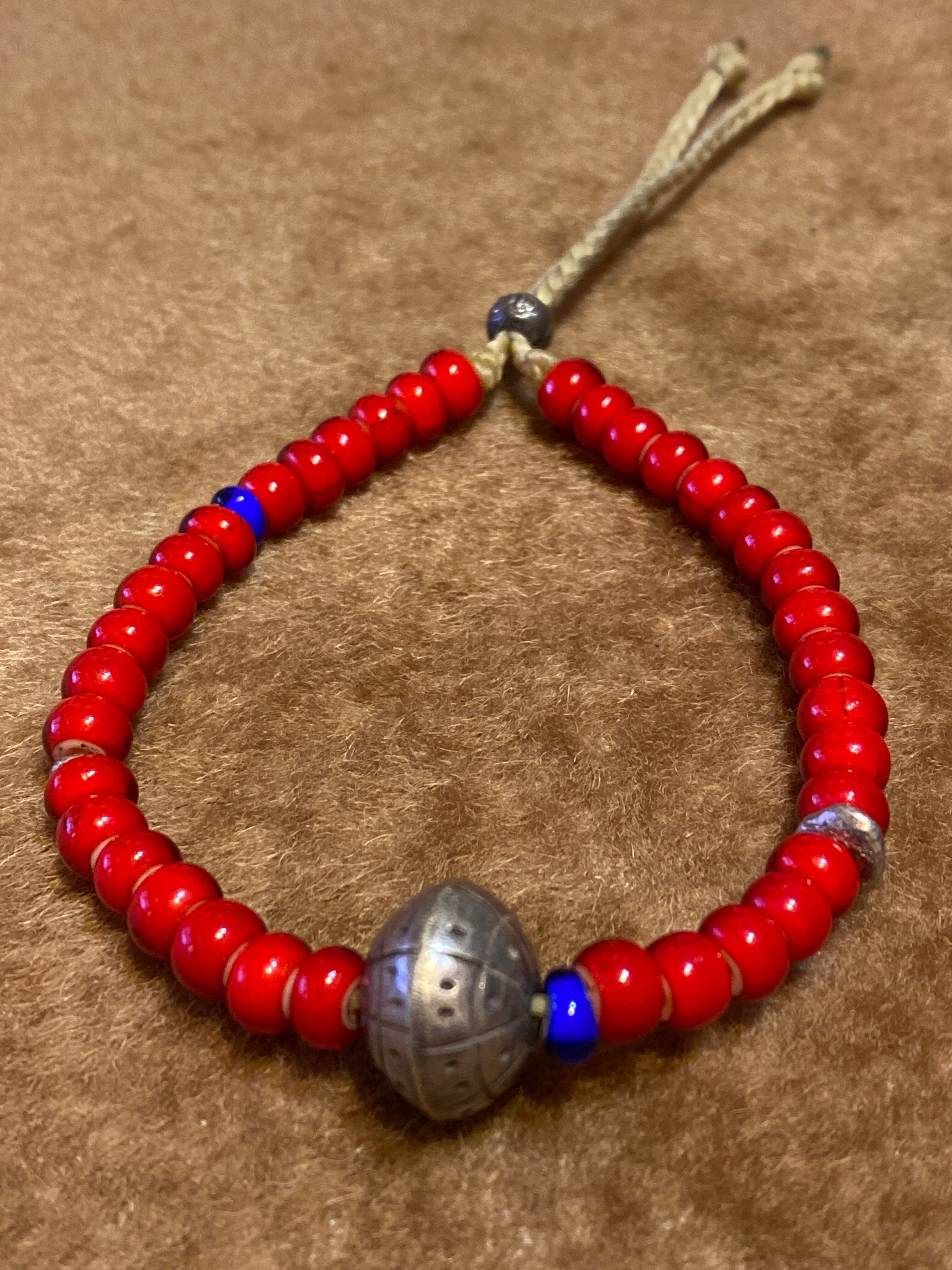 カレン族シルバー、アンティークビーズを合わせたブレスレットです。