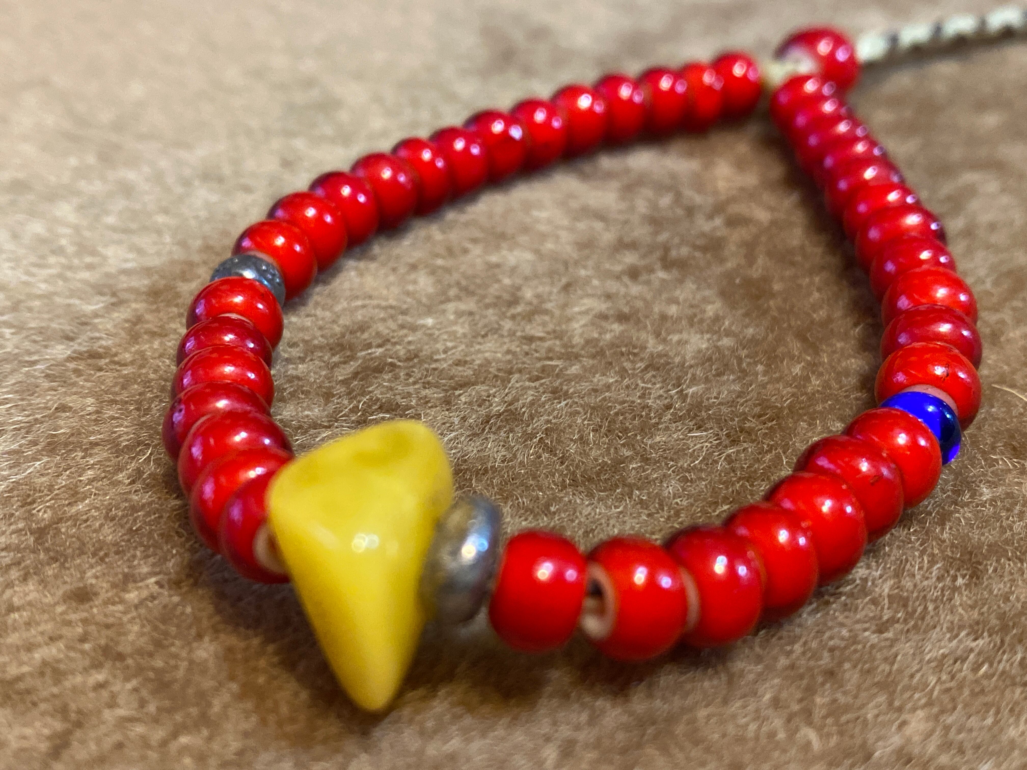 ミルキーアンバー、アンティークビーズ、カレン族シルバーを合わせたブレスレットです。