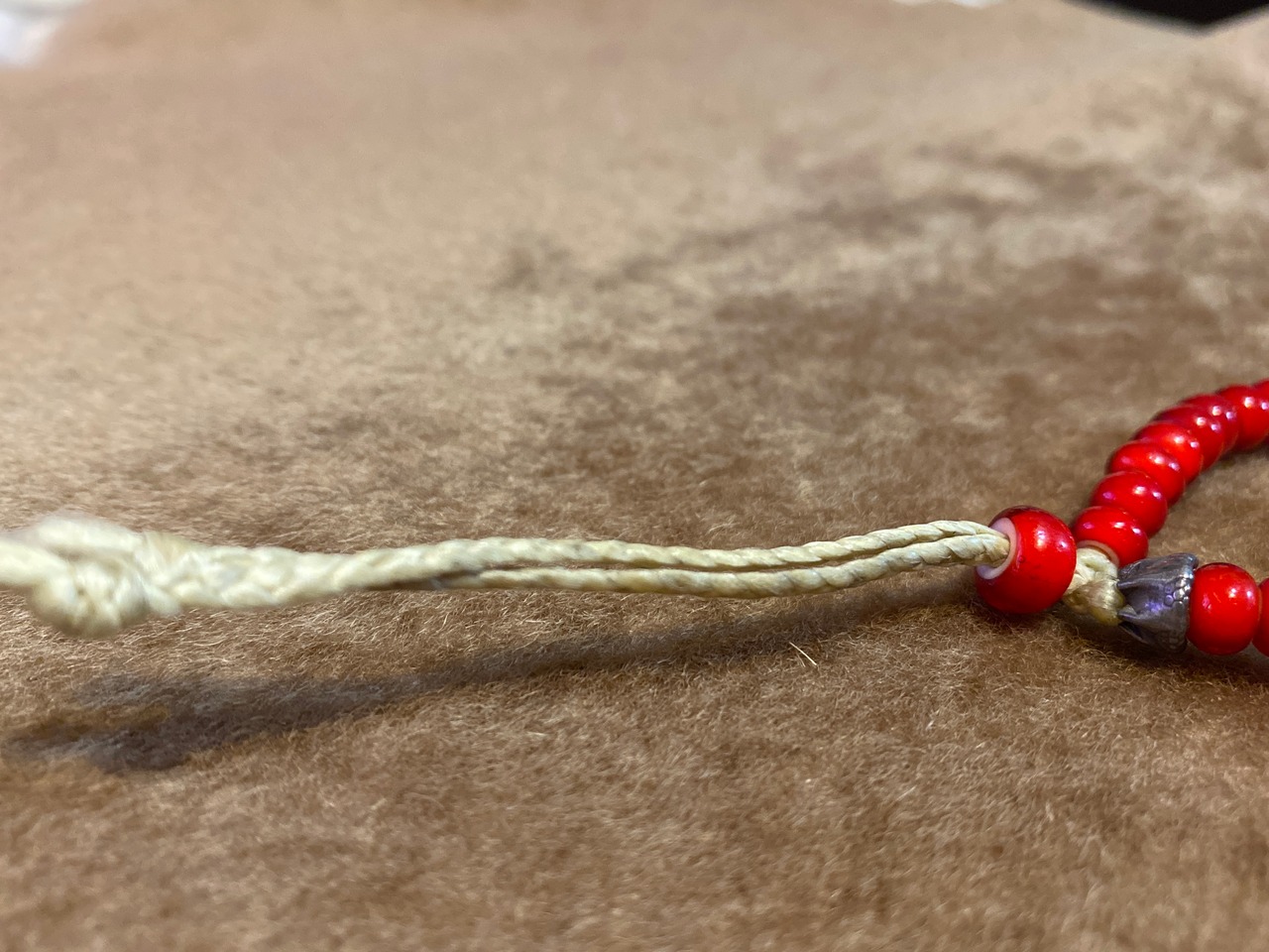 紐は生成色のロウビキの紐です。
