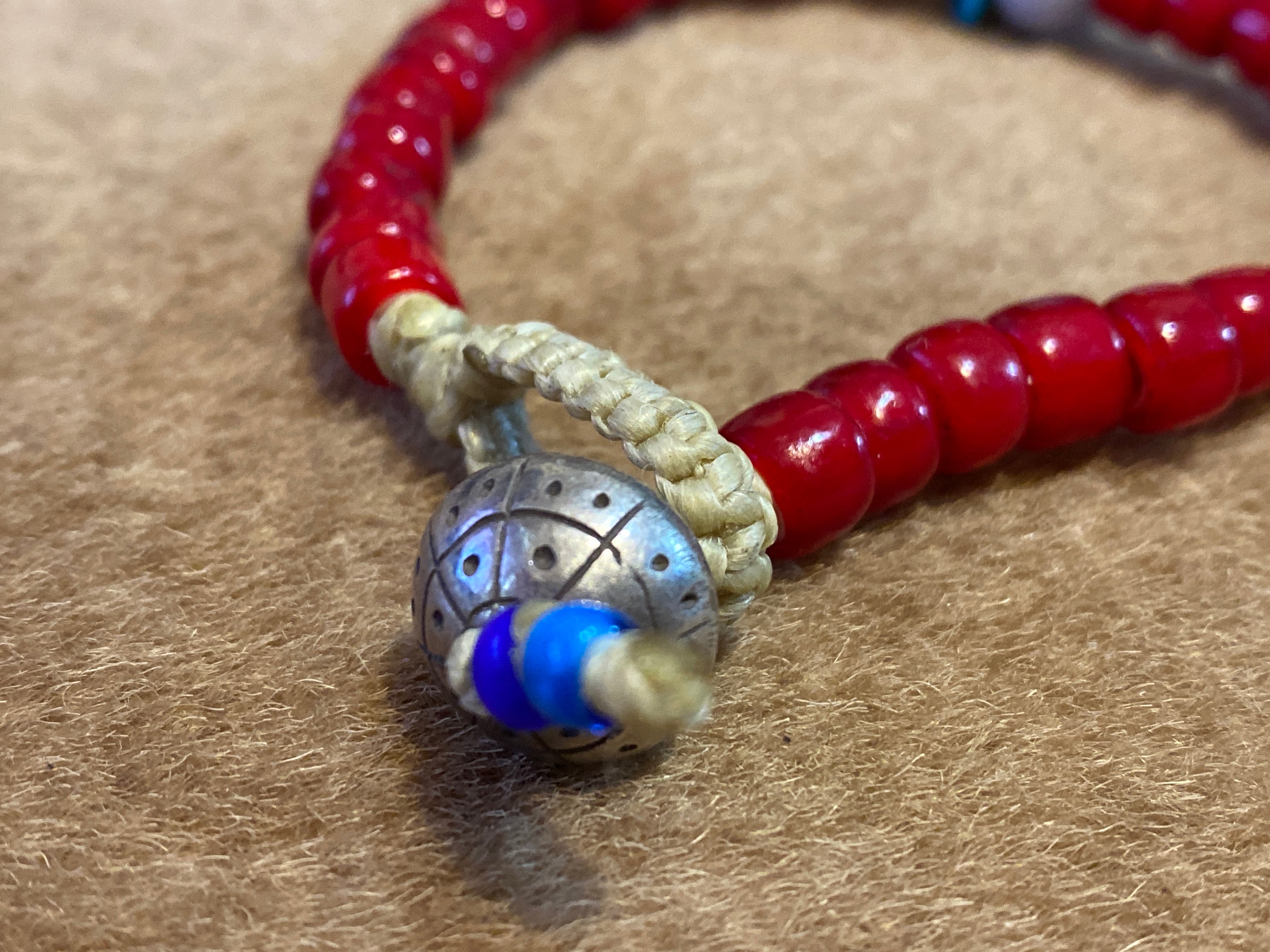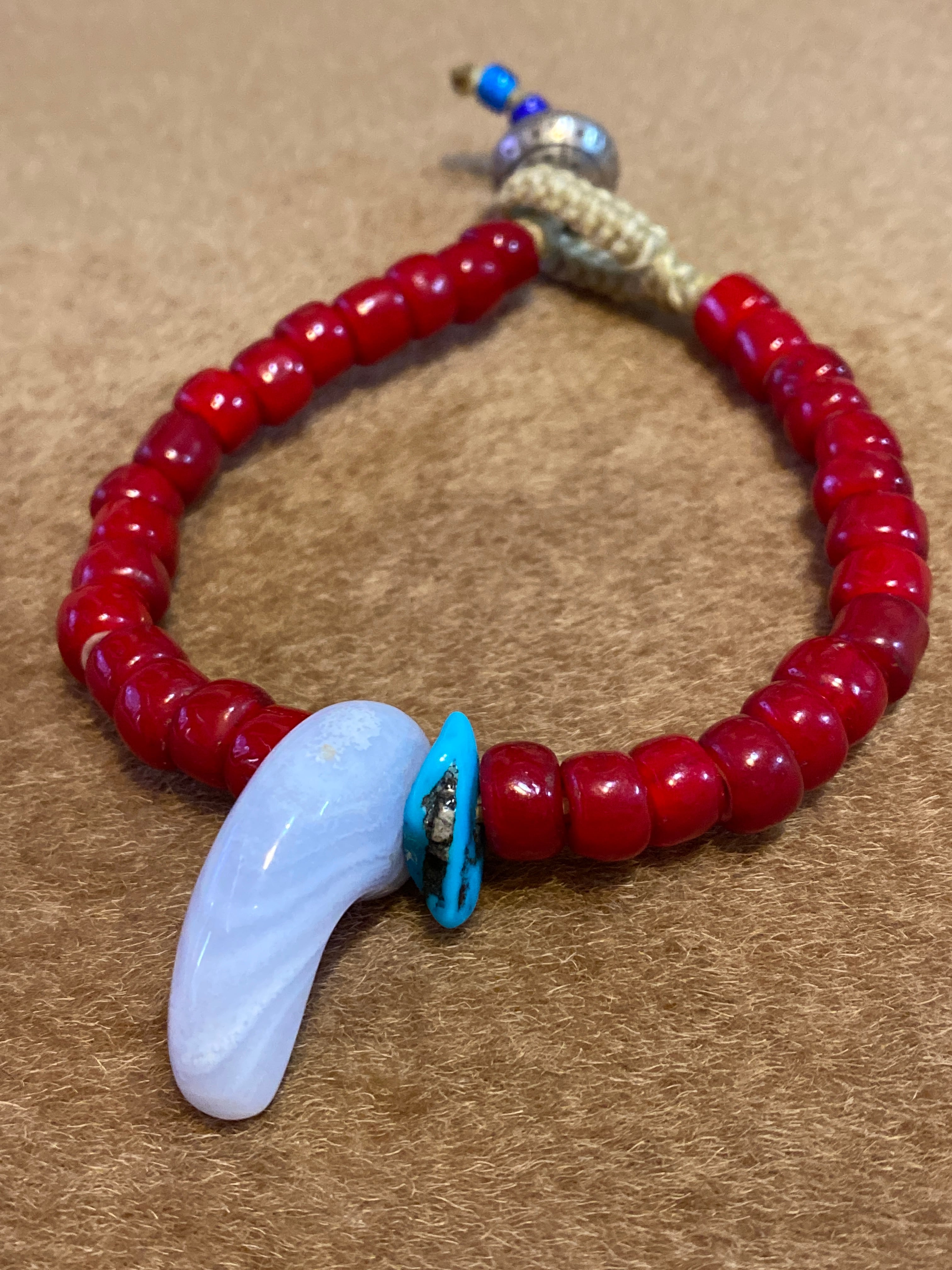 ブルーレースアゲート、アンティークビーズ、ターコイズ、アンティークビーズを合わせたブレスレットです。