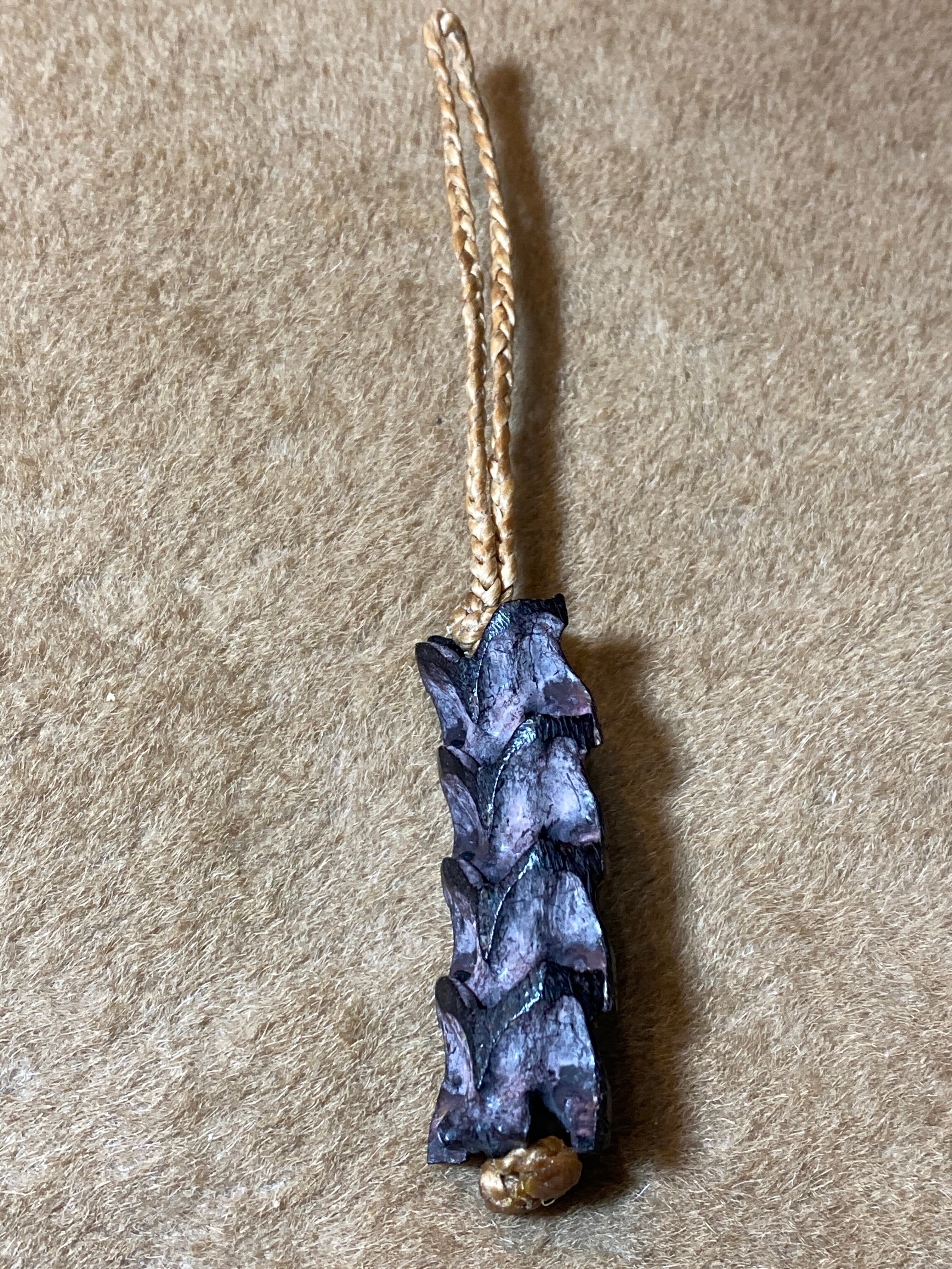 ヘビの骨とロウビキの紐を使ったキーホルダーです。