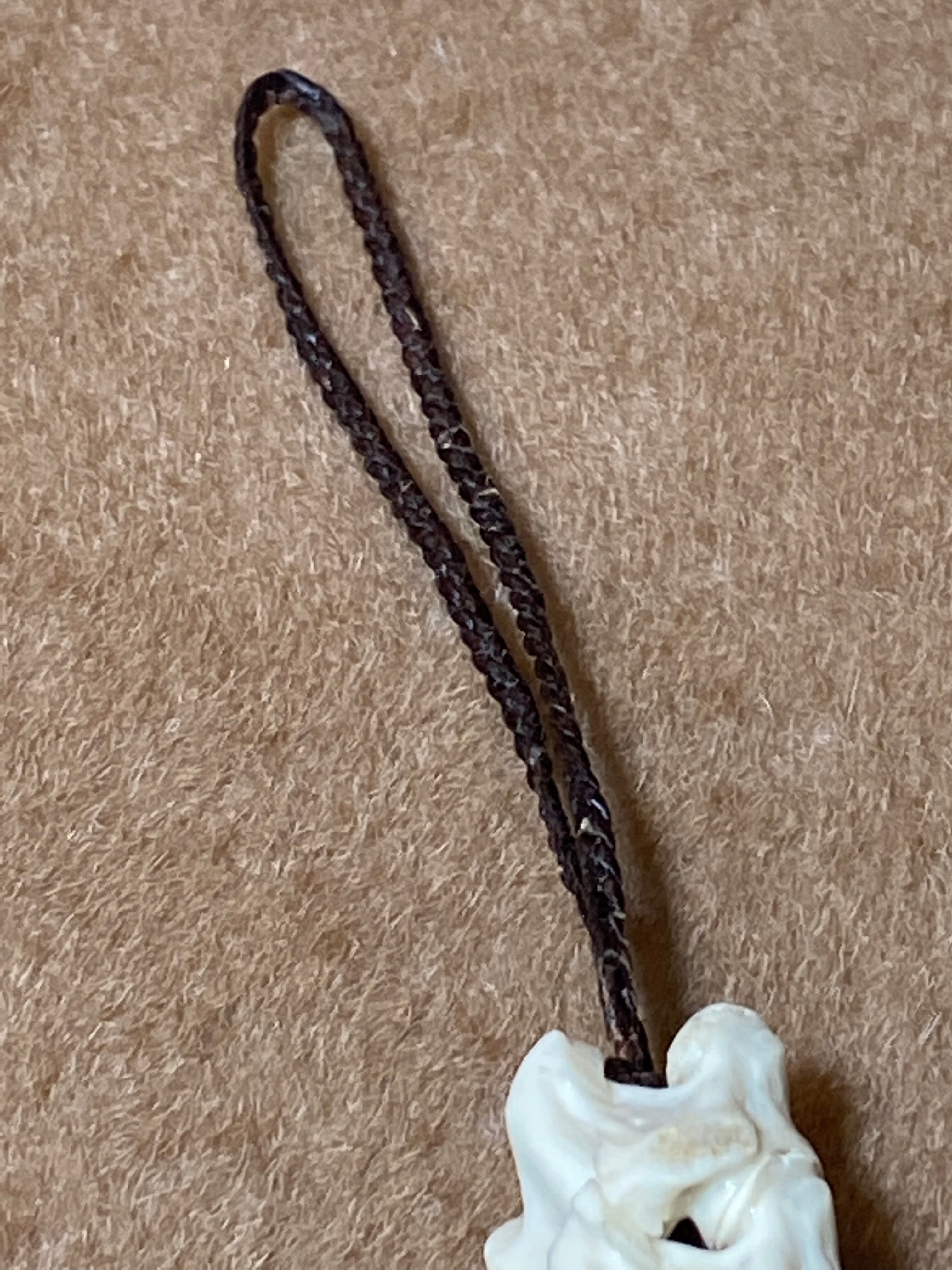 ヘビの骨とアンティークビーズとロウビキの紐を使ったキーホルダーです。