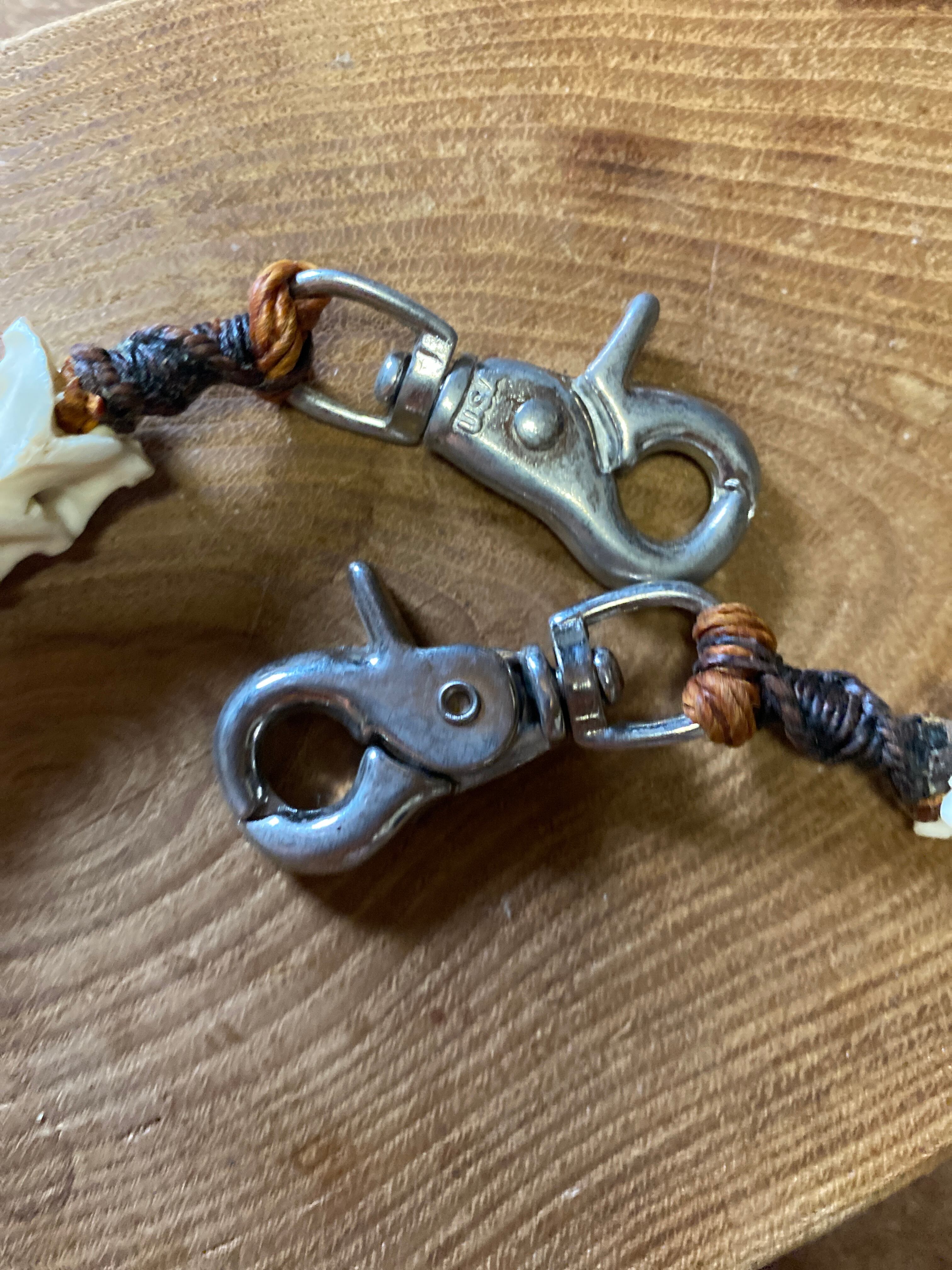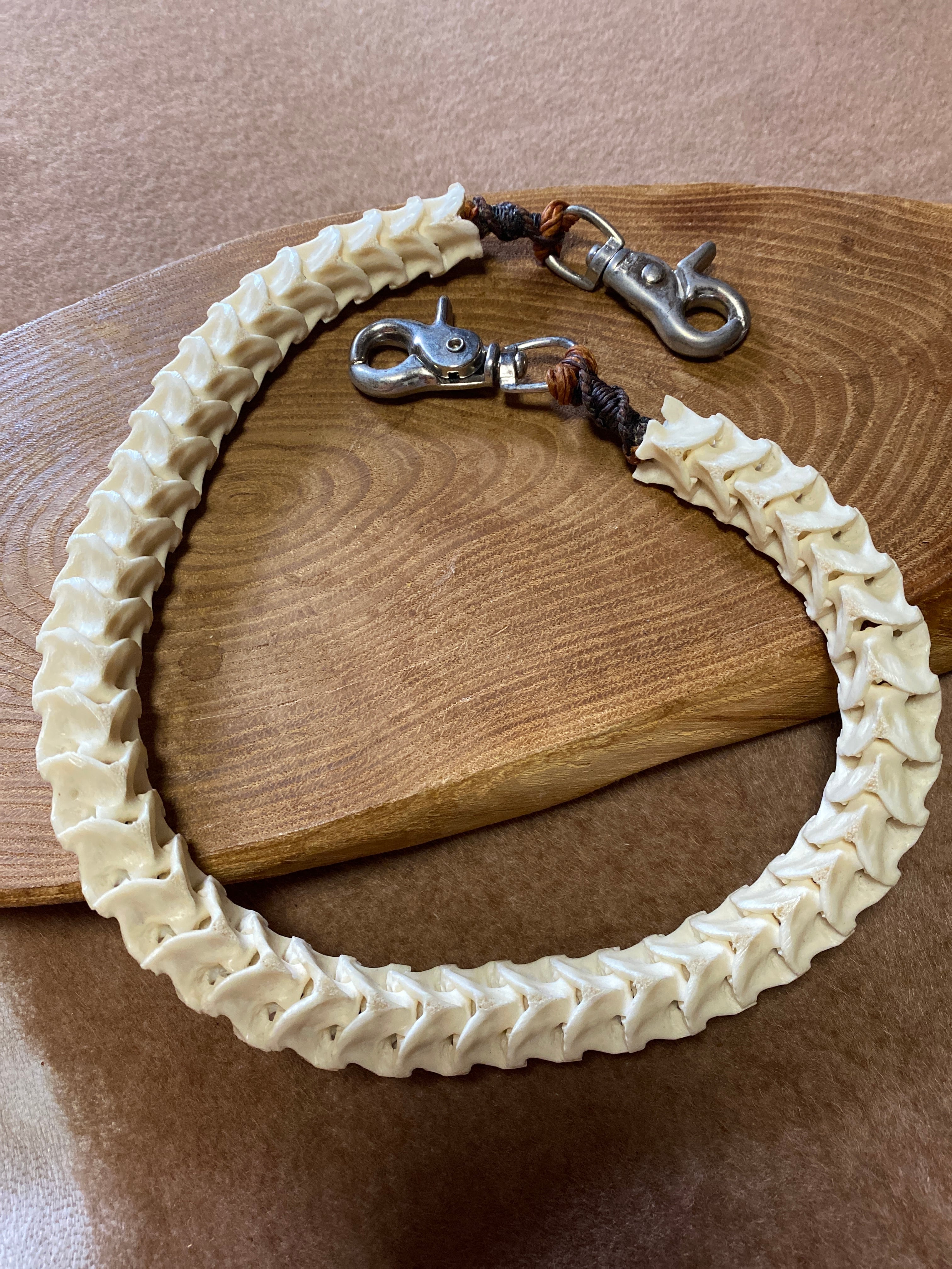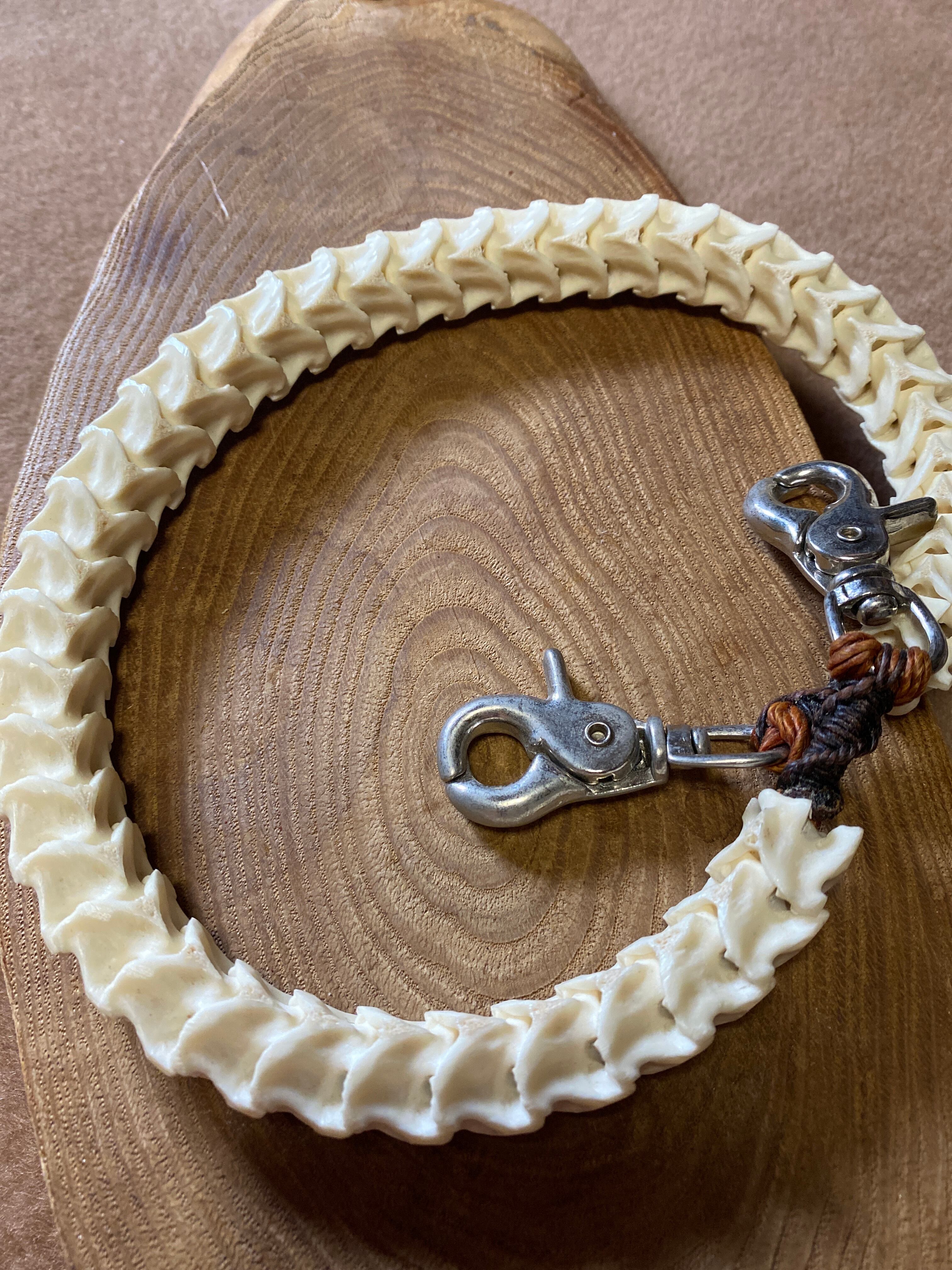 ヘビの骨とロウビキの紐を使ったウォレットチェーンです。